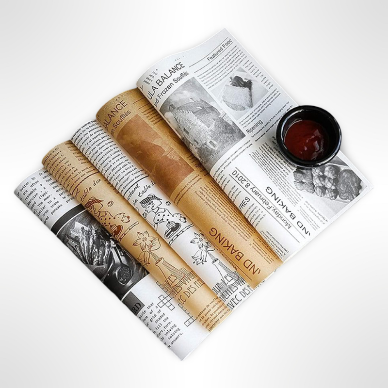 Creates a matte finish and prevents oil seepage. This custom greaseproof paper keeps food fresh and packaging mess-free.